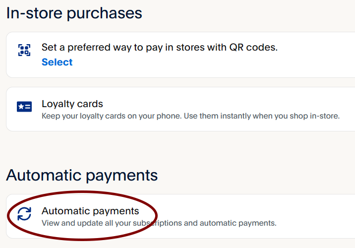 Step 4: Click on "Automatic payments" to update your preapproved payments (including subscriptions).