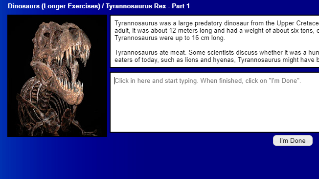 Get help from the AI. Use the AI to create your own exericses. Just provide a few options, such as a reading level and topic, and get an original story, nonfiction essay, or writing prompt in seconds.